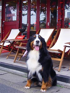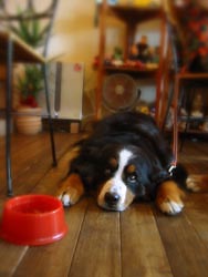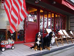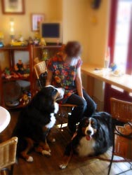 | 夏の暑い時も涼しい店内で・・・わんこもくつろぎタイム。 そっと飾られたバーニーズの写真が印象的です。 |
